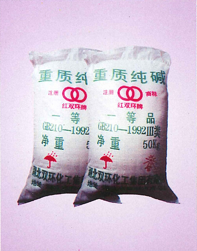 重質純堿包裝:外層聚丙烯編織袋,內襯塑料袋,凈重50Kg/袋或25Kg/袋